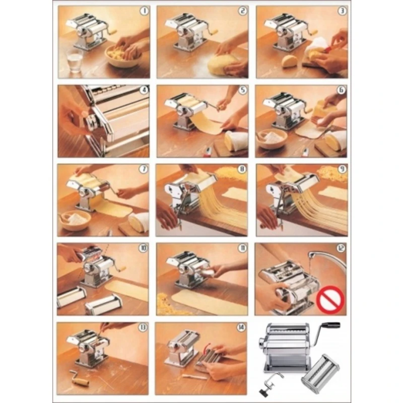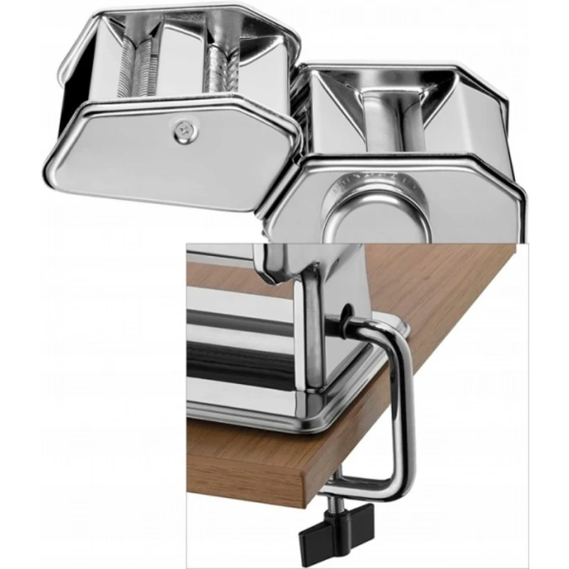 Aparat pentru paste Floria ZLN-1129 ,9 trepte reglare a grosimii, otel inoxidabil. Daca v-ati saturat de pastele, spaghetele si fideaua din comert si doriti o noua savoare si calitate, atunci folositi aceasta masina manuala de facut paste chiar la dumneavoastra acasa. Simplu, eficient si sanatos, aceasta masina de facut paste ofera cea mai inalta calitate data de producator. Masina este usor de utilizat si de intretinut. Masina de facut taitei vine insotita de manerul pentru rotire dar si de cel pentru fixarea aparatului de masa.