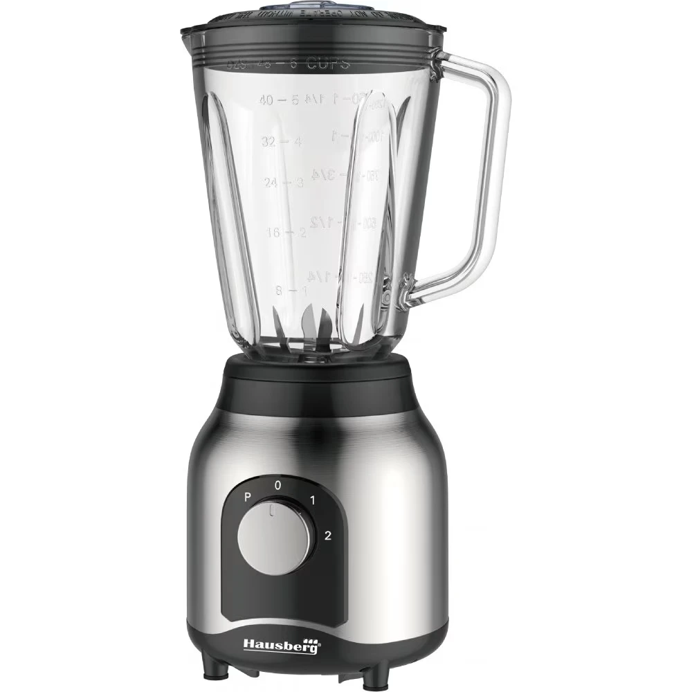 Blender cu rasnita Hausberg HB-7762, 400W, 2 viteze cu pulsatii, recipient sticla 1.5 L. Blenderul detine cutite din inox, menite sa taie fin chiar si cele mai tari fructe si legume si sa permita iesirea sucului din ele pentru crearea mixului dorit.