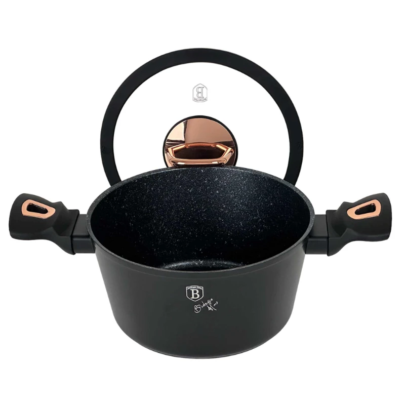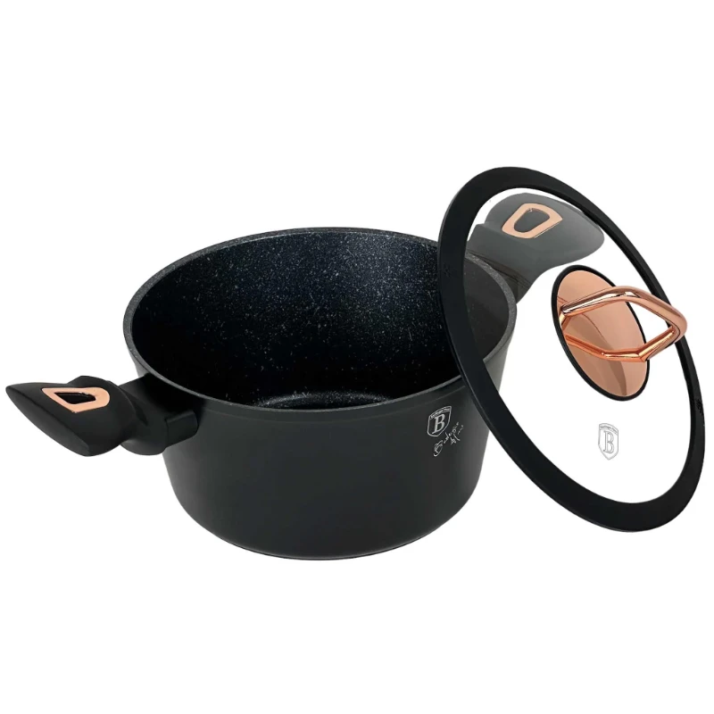 Cratita aluminiu forjat Berlinger Haus BH-1641NW, 20×10.4 cm, 2.5 L, capac, interior marmorat