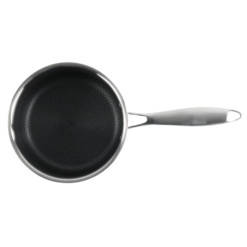 Cratita este fabricata din inox cu invelis anti-aderent cu structura hexagonala tip honeycomb ( 3 straturi inox SS304 + aluminium + inox SS430), cu maner din inox, nituit, rezistent la soc si temperaturi inalte.