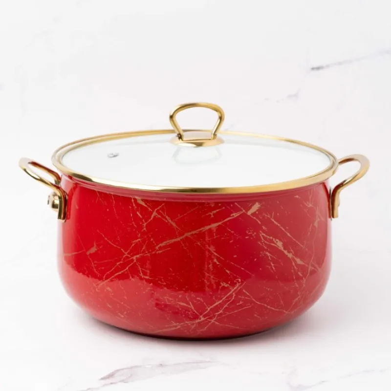Cratita emailata Goldmann GM-8017-20R, 20×13 cm, 4 litri, manere titan, inductie, rosie