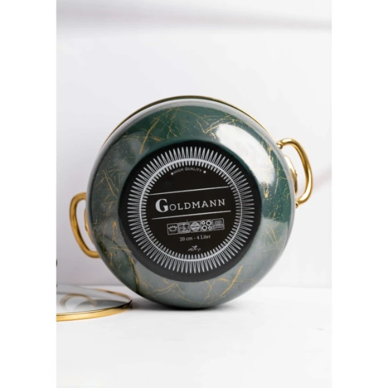 Cratita emailata Goldmann GM-8017-22G, 22×13 cm, 5 litri, manere titan, inductie, verde