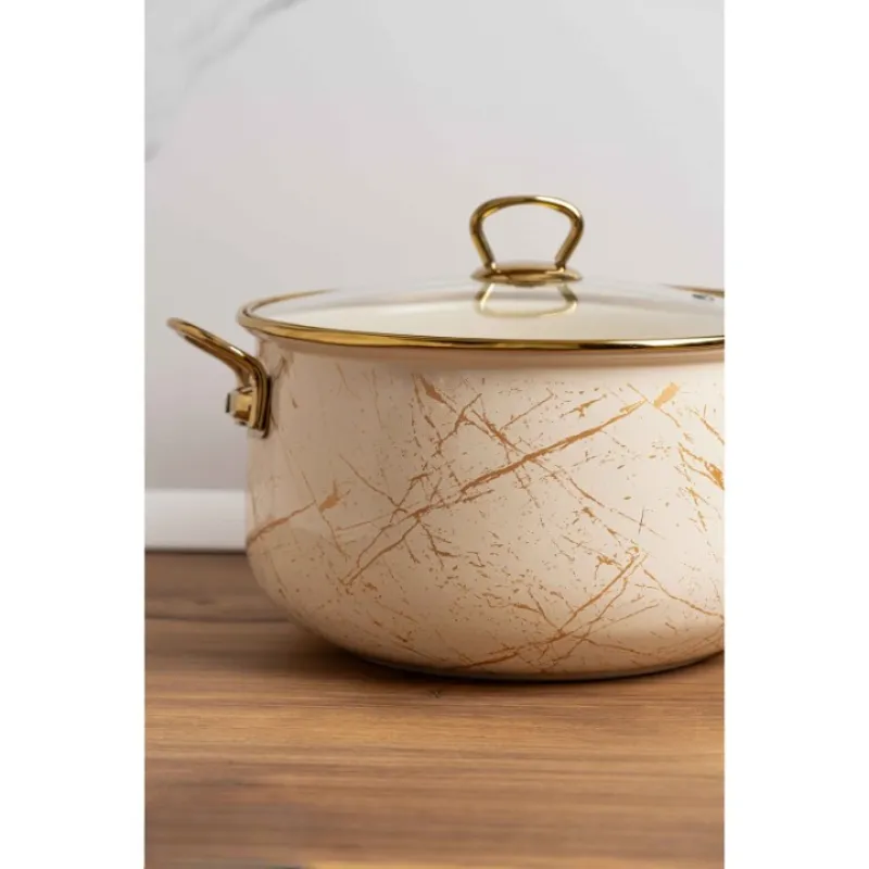 Cratita emailata Goldmann GM-8017-26B, 26×16 cm, 8.5 litri, manere titan, inductie, bej