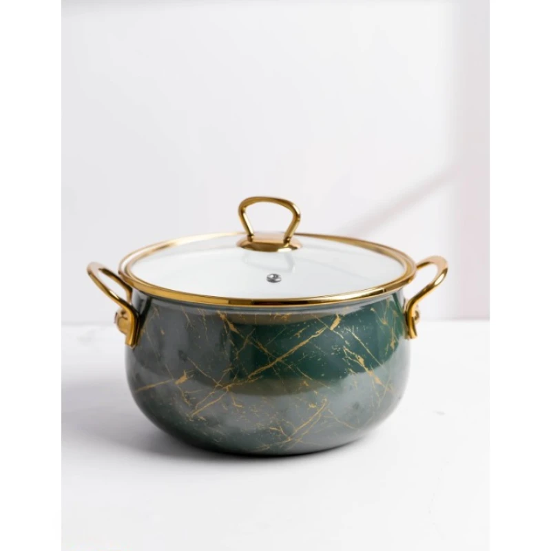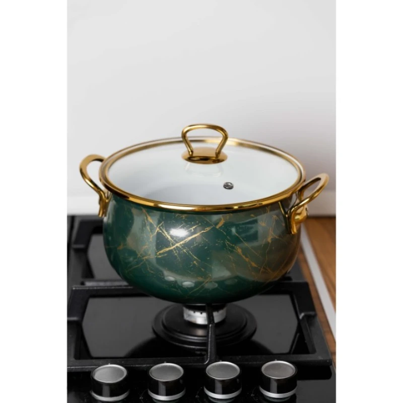 Cratita emailata Goldmann GM-8017-26G, 26×14.5 cm, 8.5 litri, manere titan, inductie, verde