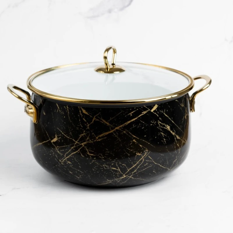 Fabricata din email de inalta calitate, cratita este rezistenta la zgarieturi si durabila in timp. Manerele din titan adauga nu doar un aspect elegant, ci si o rezistenta suplimentara, oferindu-ti confortul necesar in timpul gatitului.