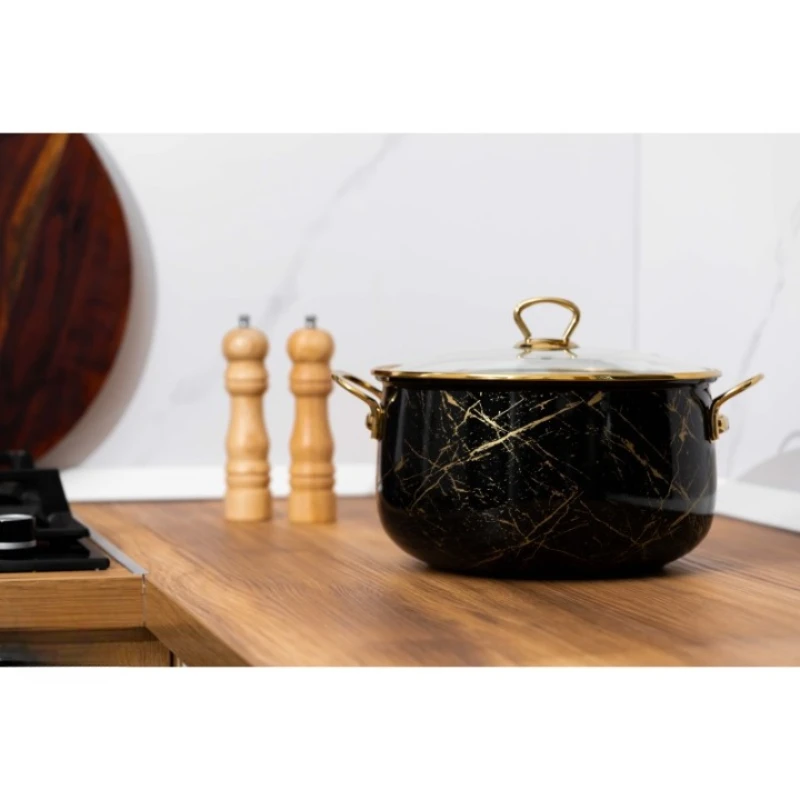Cratita emailata Goldmann GM-8017-26N, 26×16 cm, 8.5 litri, manere titan, inductie, negru