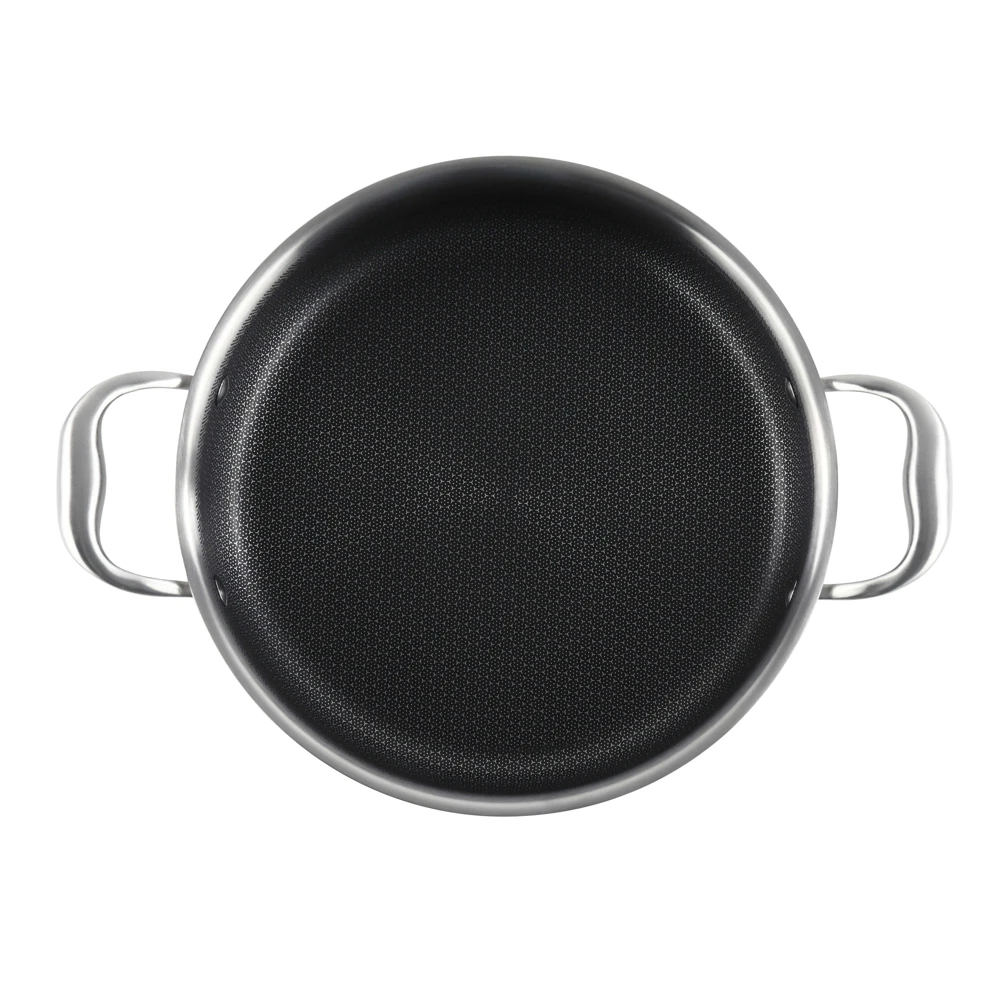 Cratita este fabricata din inox cu invelis anti-aderent cu structura hexagonala tip honeycomb ( 3 straturi inox SS304 + aluminium + inox SS430), cu manere din inox, nituite, rezistente la soc si temperaturi inalte.