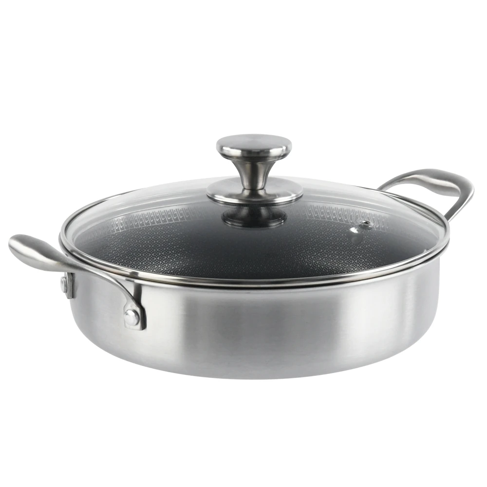 Cratita joasa din inox Grunberg GR9626, 26 cm, 3 l, capac din sticla, invelis anti-aderent honeycomb, compatibila plita cu inductie