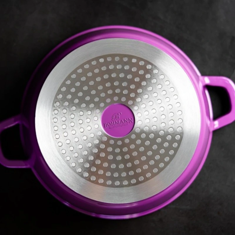 Cratita marmorata Bohmann BH-7320MRB-PR, 2.2 L, 20 x 9 cm, compatibila inductie, mov. Cratita Bohmann este insotita de un capac de sticla termorezistenta, manere din aluminiu turnat si protectie din silicon detasabila.