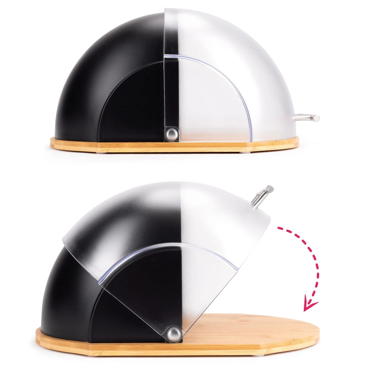 Cutie pentru depozitat paine Kamille KM1100, 38×26.5×22 cm, plastic + bambus, negru