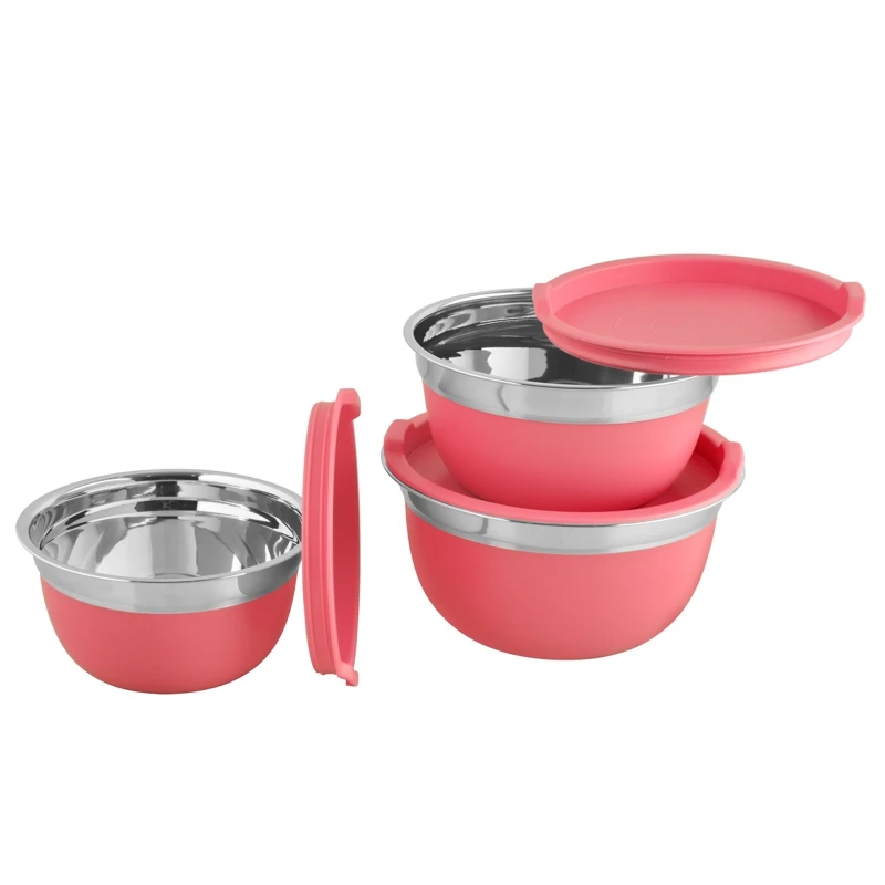 Set 3 boluri inox cu capace plastic Grunberg IGR2435, roz