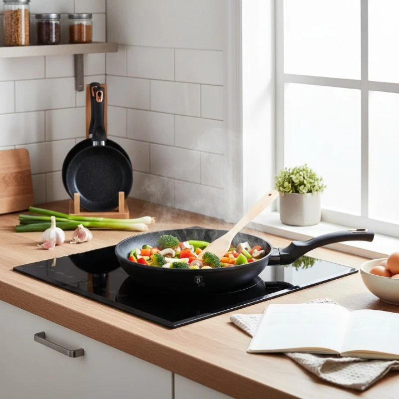 Indiferent că prepari un mic dejun rapid, sotezi legume sau gătești fripturi generoase, acest set îți pune la dispoziție instrumentul potrivit: