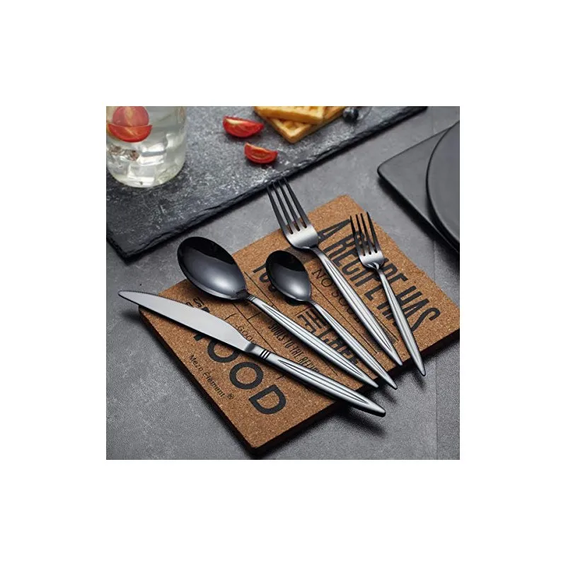 Set tacamuri din inox 30 piese Grunberg BL386B30, negru. Piesele componente sunt fabricate din otel inoxidabil placat, care confera suprafetelor duritate, rezistenta si culori intense.