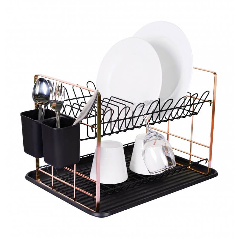 Suport de uscat vase cromat Bohmann BH-7314B, 44x13x26 cm, 2 nivele. Suportul este potrivit pentru a avea oricand la indemana o varietate de ustensile de bucatarie. Acesta se curata doar prin stergere. Acesta este dispus pe 2 etaje si are 2 suporti laterali, pentru pahare si tacamuri.