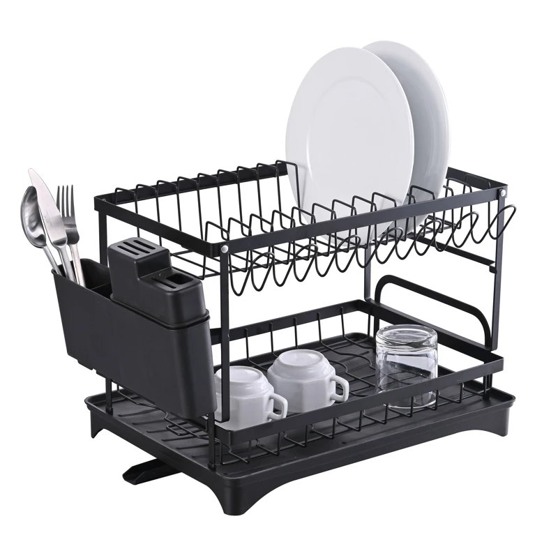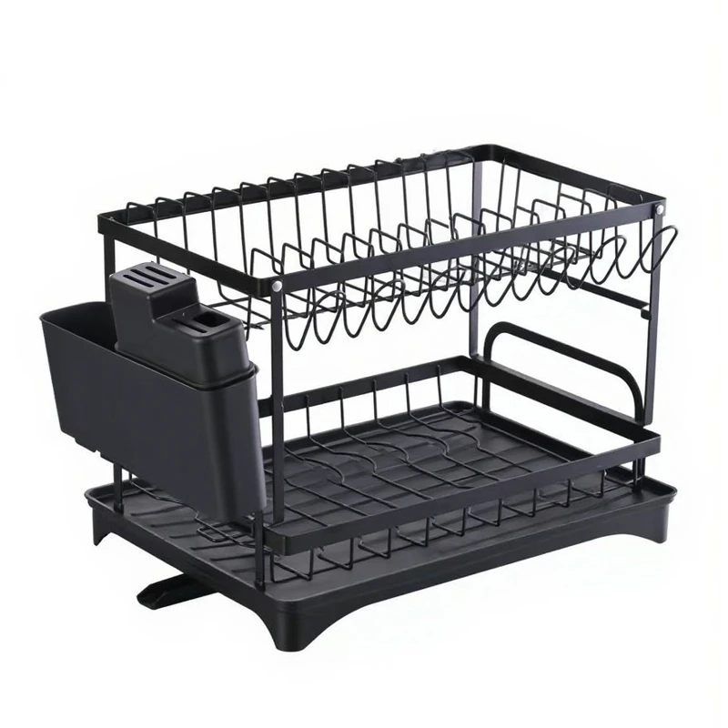 Suportul pentru vase, este fabricat din otel cu finsaj negru mat, are tava din plastic pentru scurgerea apei. Este prevazut cu suport din plastic pentru tacamuri.
