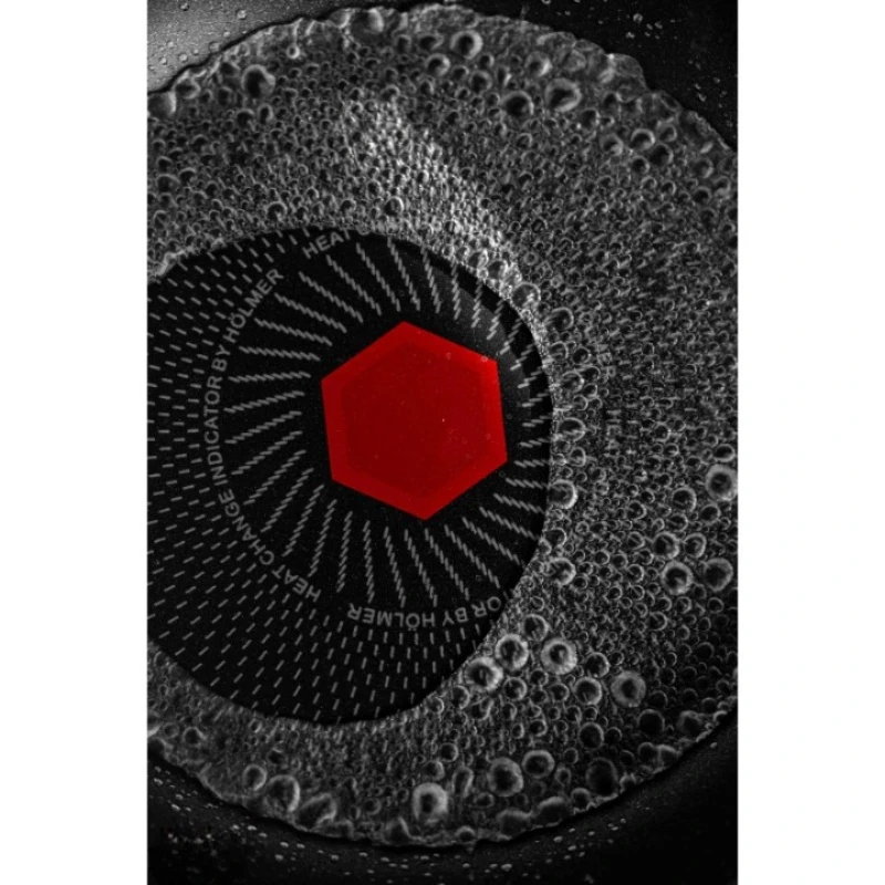 Senzor inteligent de temperatura: Bulina rosie de pe suprafata tigaii devine intens rosie atunci cand aceasta atinge temperatura optima de gatit, garantand rezultate perfecte de fiecare data.