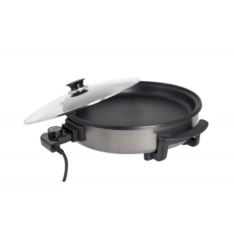 Capac de Sticlă Inclus: Capacul din sticlă îți permite să monitorizezi preparatul fără a pierde căldură sau a lăsa vaporii să scape, asigurându-te că fiecare felie de pizza este gătită la perfecție.