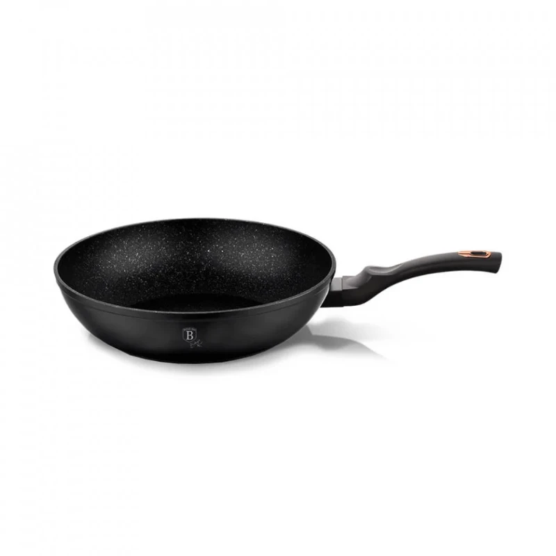 Tigaie Wok din aluminiu forjat Berlinger Haus BH-1638NPR, 28×7.4 cm, 3.2 L, interior marmorat, negru